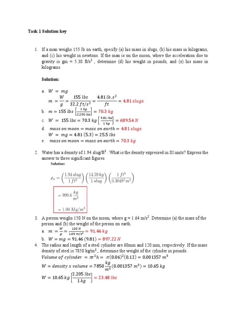 Solved 1 A Body Weighs 1000 Lbf When Exposed To A Standard Earth Gravity G 32 174 Ft S2 A What Is Its Mass In Kg B What Will The Weight Of Th Course Hero